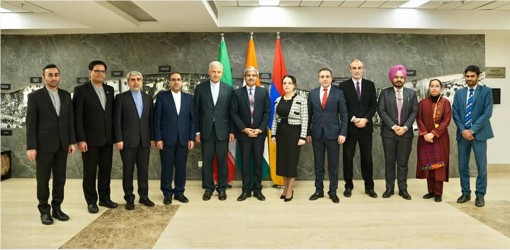 The meeting, which took place on Thursday, 12th December (22 Azar in the Iranian calendar), was led by J.P. Singh, Joint Secretary of the Iran, Pakistan, and Afghanistan Division at India’s Ministry of External Affairs; Anahit Karapetyan, Head of the Asia and Pacific Department at the Ministry of Foreign Affairs of Armenia; and Hashem Ashja zadeh, Director-General of the South Asia Department at the Ministry of Foreign Affairs of the Islamic Republic of Iran.