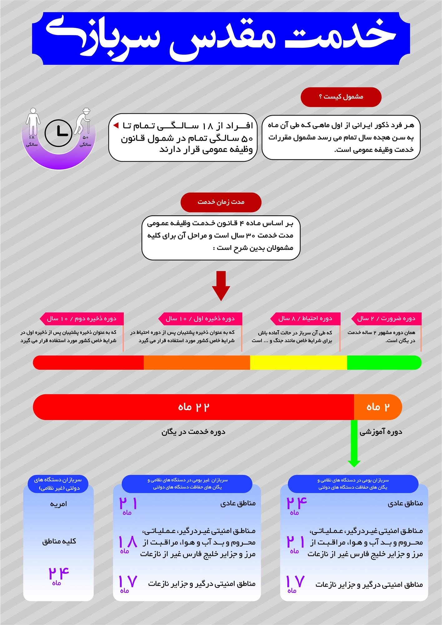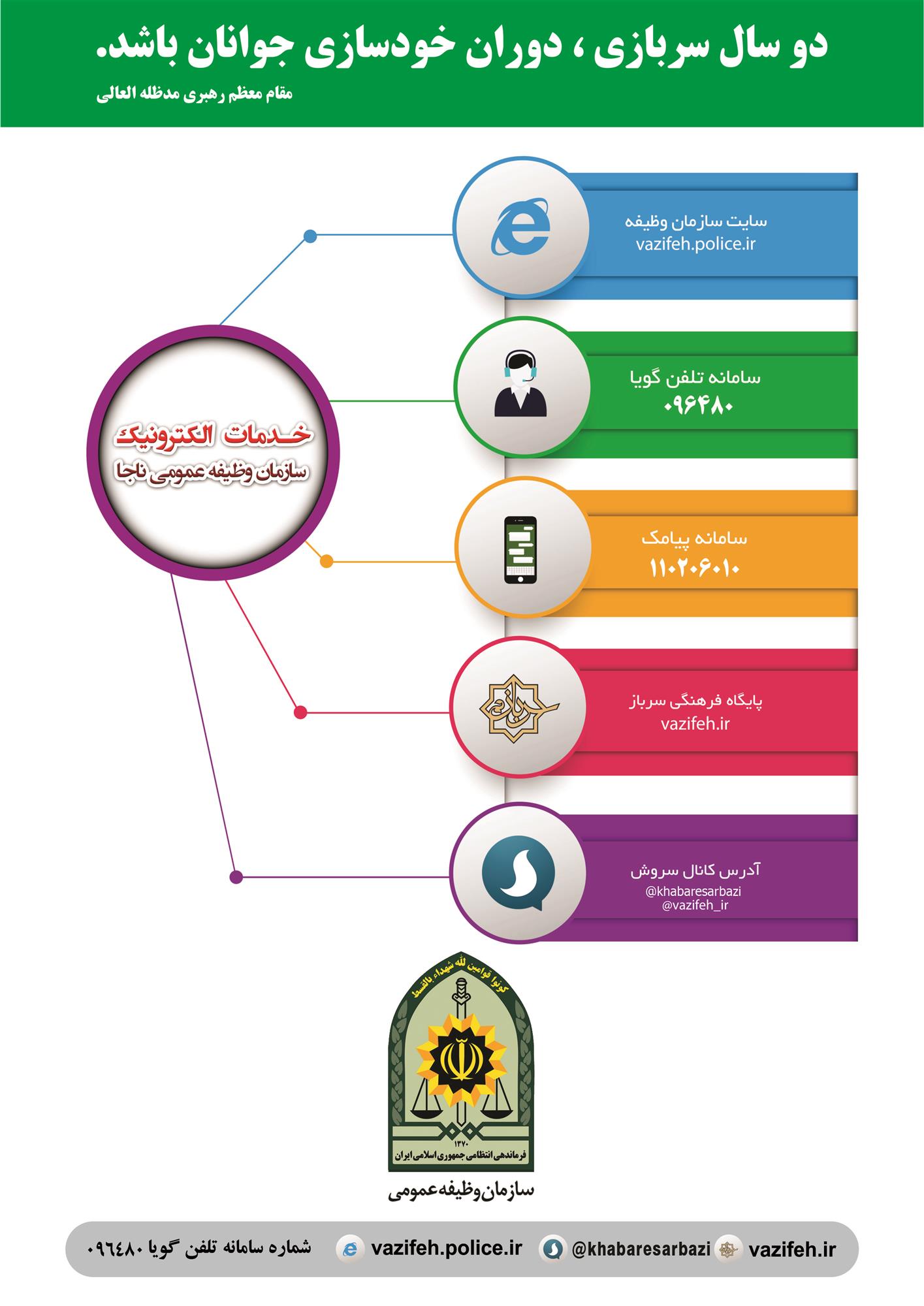 این بخش اختصاص دارد به اطلاعات مربوط به خدمت نظام وظیفه عمومی، مانند :