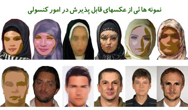ارائه تعداد 12 قطعه عکس جدید 4*3 تمام رخ، بدون کلاه، عینک تیره و پشت نویسی شده برای خانمها با رعایت حجاب کامل اسلامی، طبق نمونه